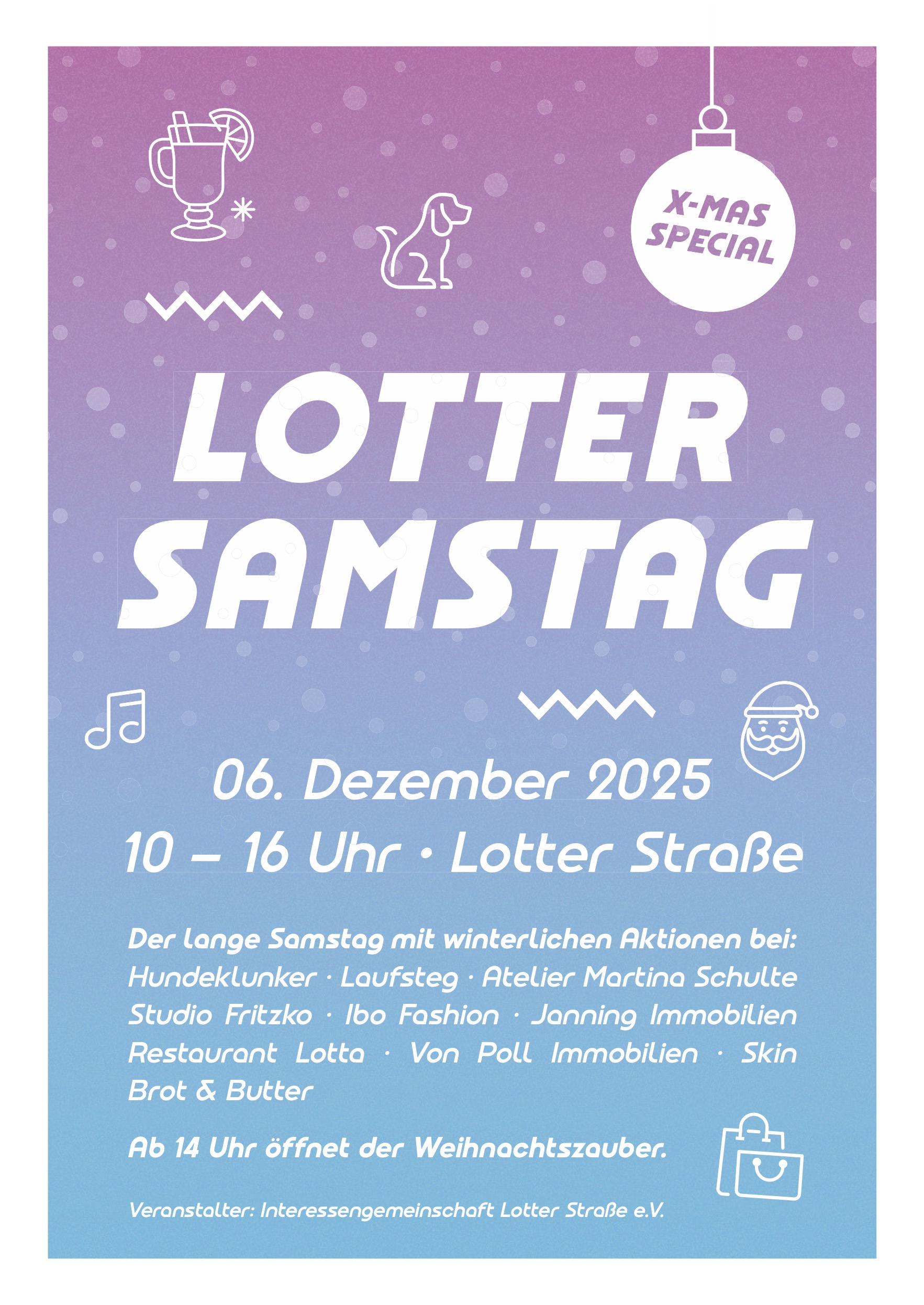Der Weihnachtszauber an der Lotter Str. bleibt aufgrund von Totensonntag heute geschlossen.